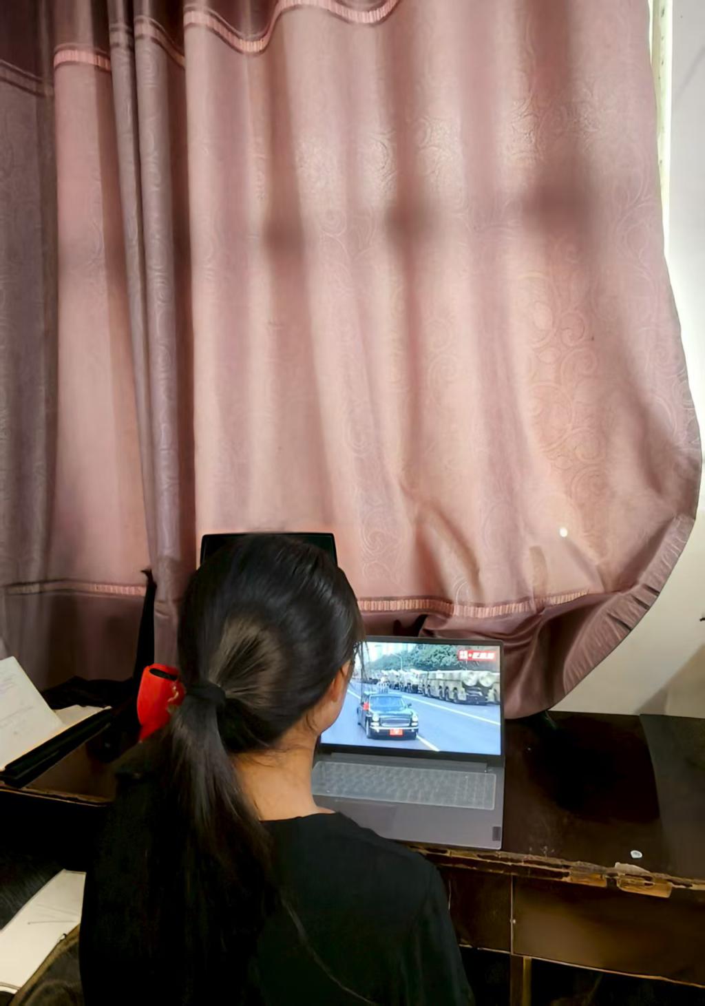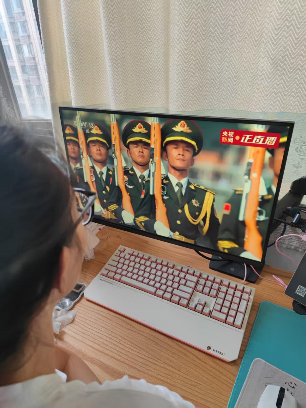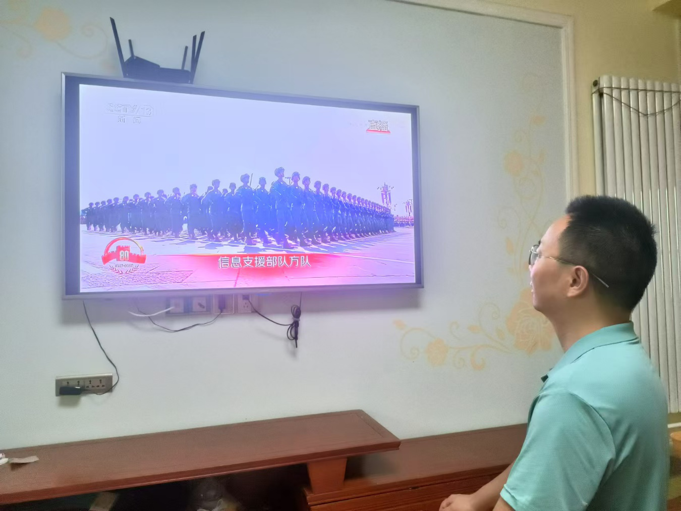 学院采用集中观看与自行观看相结合的方式组织本次活动。部分师生代表在207会议室集中收看,其他师生则通过网络平台自行观看。师生们着装整洁,神情专注,全程保持肃穆安静。大家跟随直播画面,仿佛置身天安门广场,感受这场庄严隆重的纪念活动。当看到受阅部队在长安街列阵接受检阅的壮观场面,许多师生不禁为之动容。