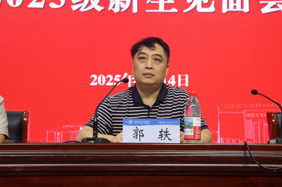 党总支书记郭轶首先代表学院全体师生,对来自全国各地的新生表示热烈欢迎和诚挚祝贺。他详细介绍了学院的历史沿革、师资力量、教学资源以及近年来在学科建设、科研创新和人才培养等方面取得的显著成绩。并围绕开学后的学习安排、校园生活注意事项等内容为同学们提出建议,鼓励大家尽快适应新环境、明确目标、全面发展。