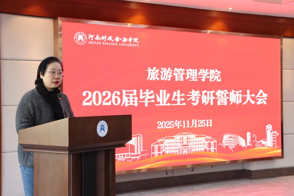 11月25日,我院2026届毕业生考研誓师大会在行知楼3136教室召开。太阳成集团tyc9728院长李颖慧、党总支副书记谢雯、副院长顾家伟出席大会,教师代表高尚,辅导员王宁、李永梅、何欢、刘艺璇以及全体考研学子参加大会,大会由王宁主持。