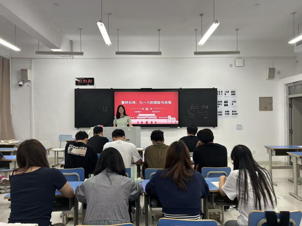 活动中,各班形式多样。有的班级通过播放相关题材电影,带同学们重温那段屈辱与抗争的历史,画面里的烽火岁月让大家直观感受到先辈们的英勇无畏;有的班级以PPT展示、主题演讲等方式,深入讲解“九一八”事变的历史背景、经过及影响,清晰梳理历史脉络,让同学们对这一历史事件有更全面深刻的认识;还有班级在黑板上书写“铭记九一八,吾辈当自强”等标语,营造出庄重的纪念氛围,同学们在交流讨论中,抒发对历史的追思与对未来的担当。