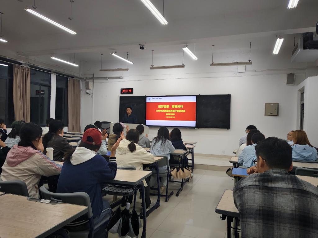 西部计划宣讲会的召开,让学院学生进一步了解了西部计划,激发了青年学子投身西部、奉献青春的热情与责任感,助力他们以志愿精神筑牢家国情怀,借专业素养展现西部发展新貌,在广袤的西部大地上书写青春华章。